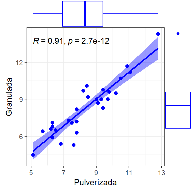 t.test(x = Pulverizada, y = Granulada,