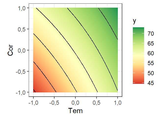 step. Quais termos são significativos?Faça os gráficos de efeitos principais e de interação de segunda ordem e determine os níveis dos fatores que maximizam as respostas.
