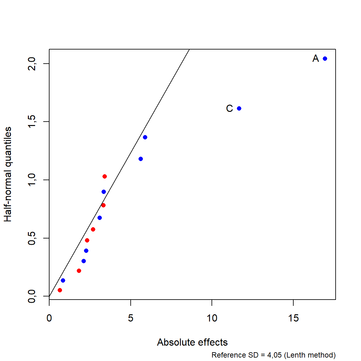 DANIEL, Cuthbert. Use of half-normal plots in interpreting factorial two-level experiments. Technometrics, v. 1, n. 4, p. 311-341, 1959.