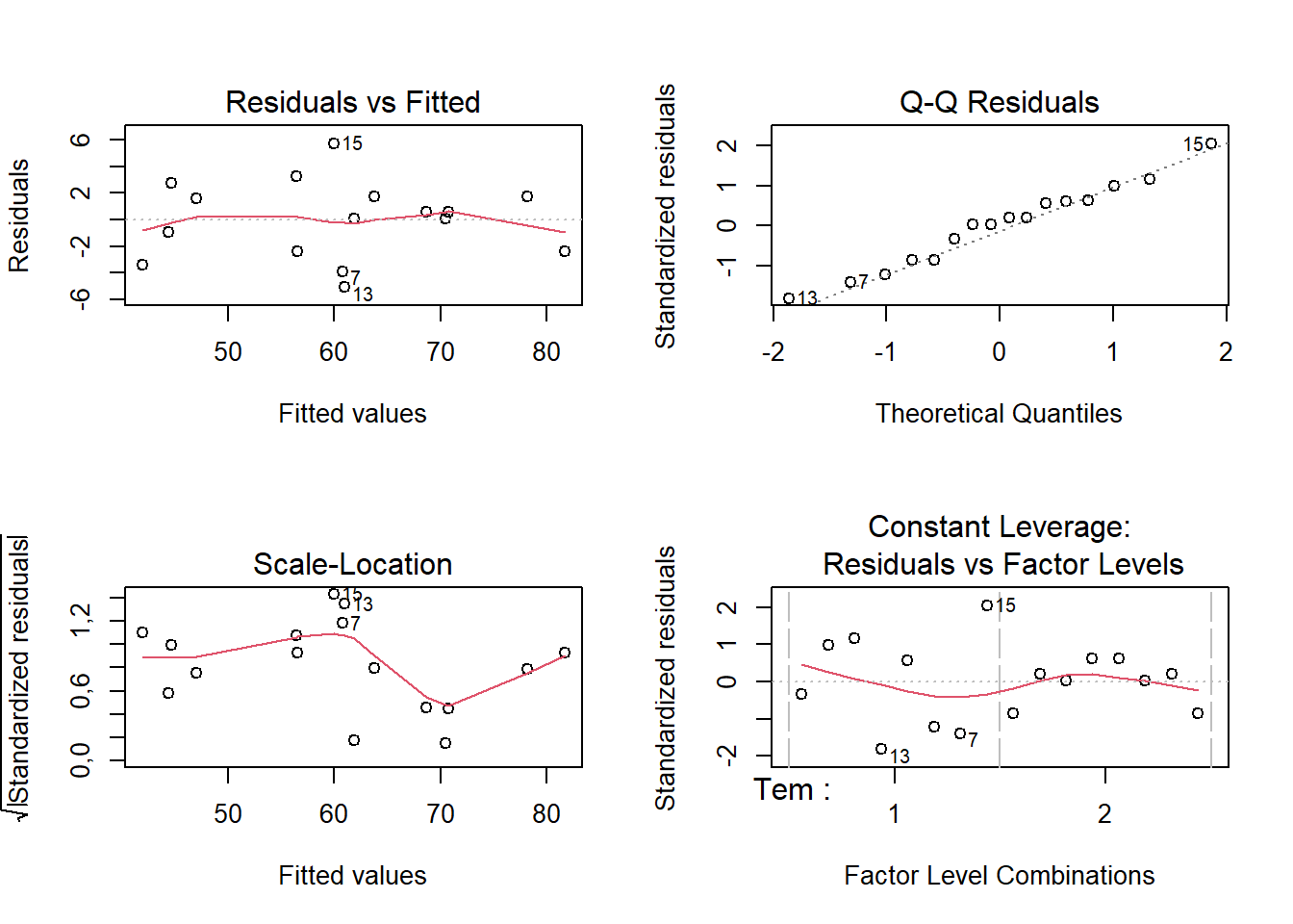FrF2(nruns = 16, nfactors = 4, factor.names = list(Tem = c(1,