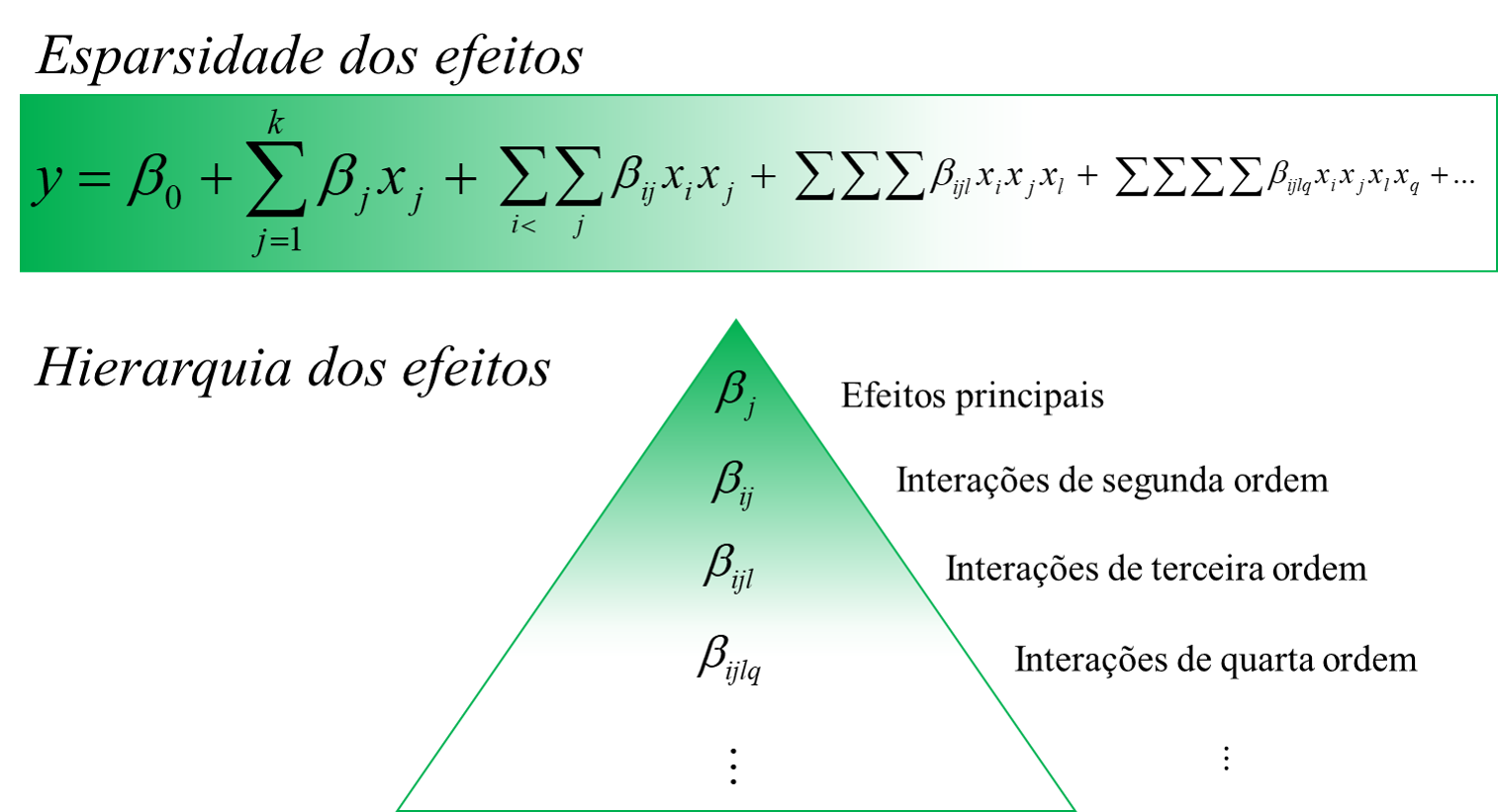 Existem métodos alternativos para estimar o erro experimental considerando os efeitos mais esparços, isto é, os efeitos de menor magnitude. Estes métodos se baseiam no princípio da esparcidade dos efeitos que garantem que poucos efeitos apresentam magnitude não desprezível, enquanto a maior parte dos efeitos investigados é esparça. Outra possibilidade de estimativa do erro experimental pode ser realizada a partir da redução hierárquica do modelo e, deste modo, testar a significância dos efeitos de menor ordem. Geralmente, os efeitos de menor ordem explicam melhor a variabilidade dos dados. Modelos saturados e com termos de ordem maior além de difícil interpretação, geralmente apresentam maior variabilidade.