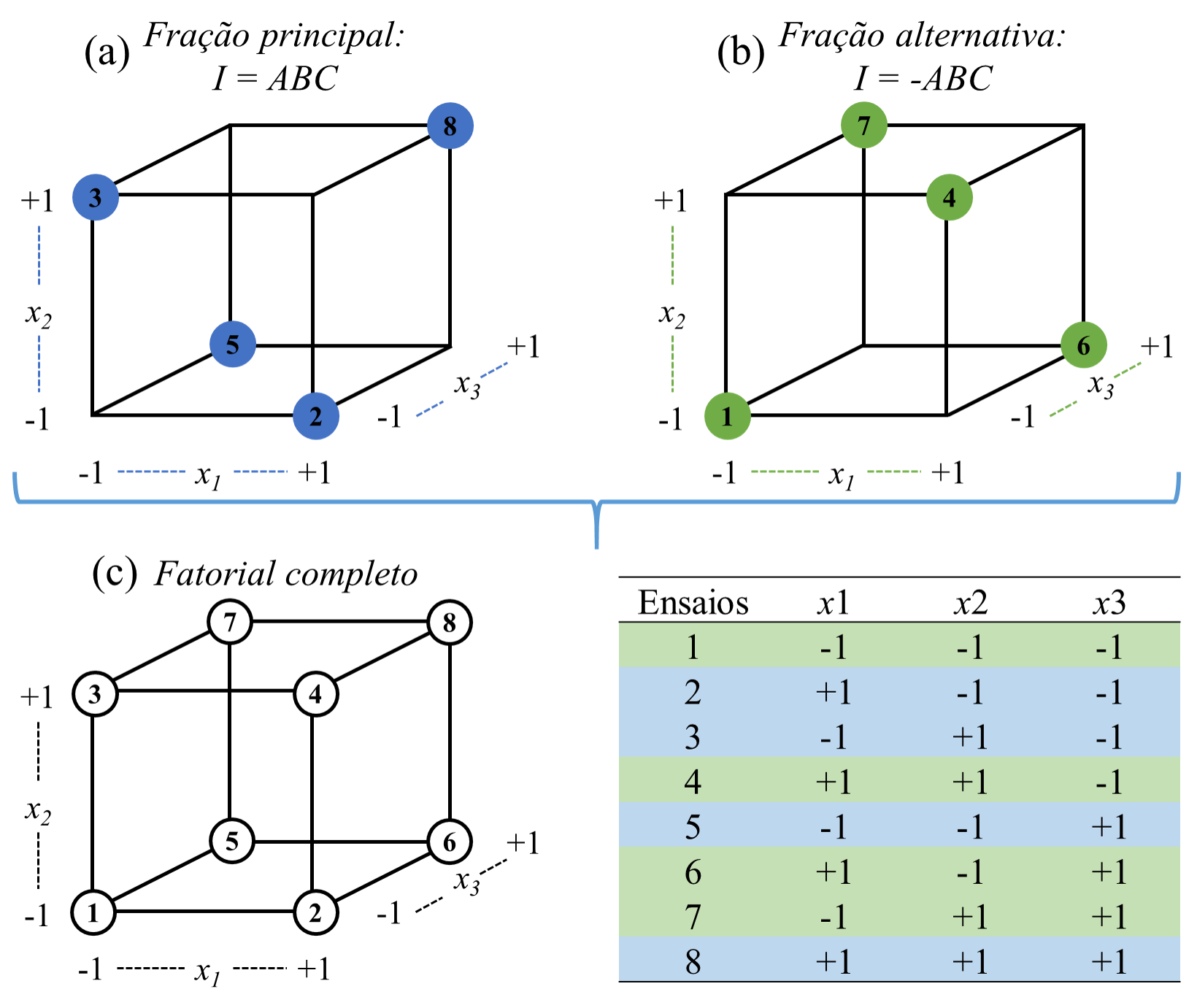 Neste capítulo, será apresentado o planejamento fatorial \(2^k\) não replicado. Em seguida serão explicados os conceitos de blocagem. confundimento no fatorial \(2^k\). O planejamento fatorial fracionado \(2^{k-p}\) é exposto a partir dos conceitos de confundimento anteriormente apresentados.